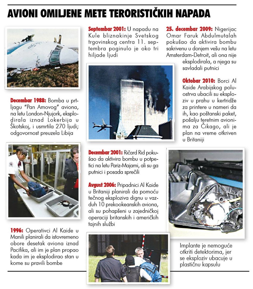 - Mogućnost da militantni aktivisti unesu u avion bombu ušivenu u stomak, grudi ili zadnjicu prisiljava nas da uvedemo dodatne mere bezbednosti na američkim aerodromima ili aerodromima u inostranstvu koji imaju linije sa SAD - rekao je Nik Kembel, portparol Uprave za bezbednost saobraćaja (TSA).