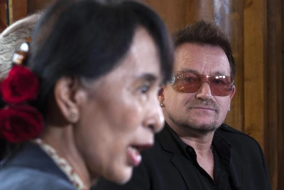 On i Su Ći su više od sat vremena odgovarali na pitanja učesnika konferencije mirovnih posrednika u Oslu, a zatim su njegovim privatnim avionom odleteli u Dablin, na koncert u čast mjanmarske aktivistkinje. Bono je 2000. godine napisao hit "Walk On" u čast Su Ći, a svetsku turneju svog benda 2009. je posvetio njoj - iako je nikada nije upoznao.