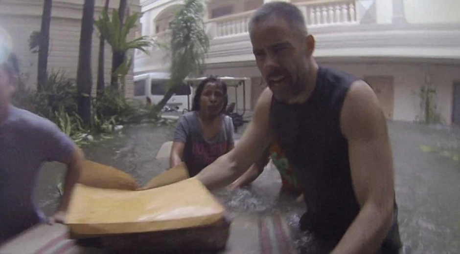 Preživeli su kataklizmu tajfuna Hajan i razorni talas plime koji su doneli jaki vetrovi, da bi ostali zarobljeni u poplavljeni zgradama okruženi vodom visokom do struka i srušenim kablovima dalekovoda.