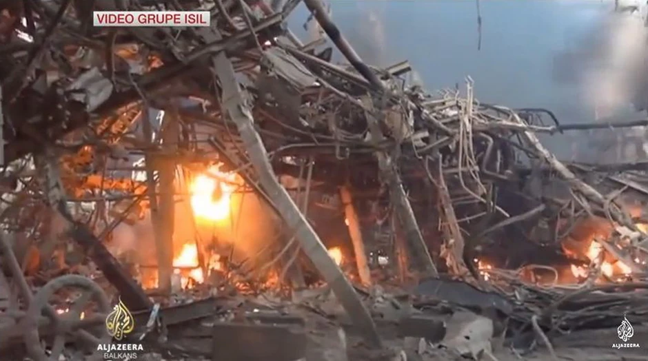 Na snimcima koje je objavila Islamska država vidi se postrojenje u plamenu, a snage bezbednosti su zbog plamena usporene u ponovnom zauzimanju rafinerije.
