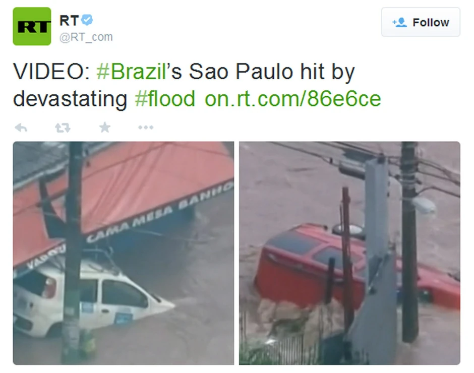 Sao Paolo, najveći brazilski grad, našao se na udaru enormnih padavina u sredu, nakon nekoliko meseci suše.
