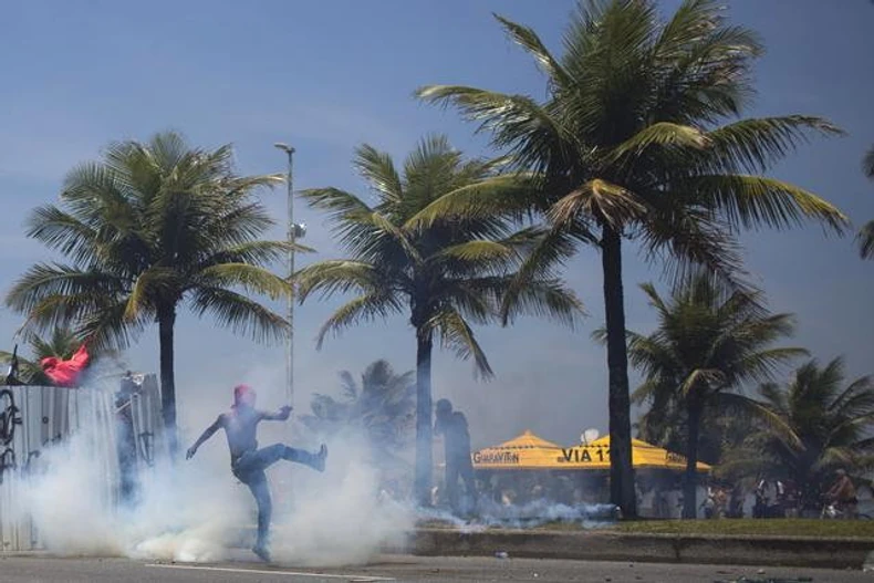 Lokalni mediji javili su da je nekoliko maskiranih demonstranata bacilo kamenice i šipke na autobuse na kojima su bile oznake Svetskog fudbalskog saveza (FIFA), nakon čega je policija angažovana za rasterivanje okupljenih.