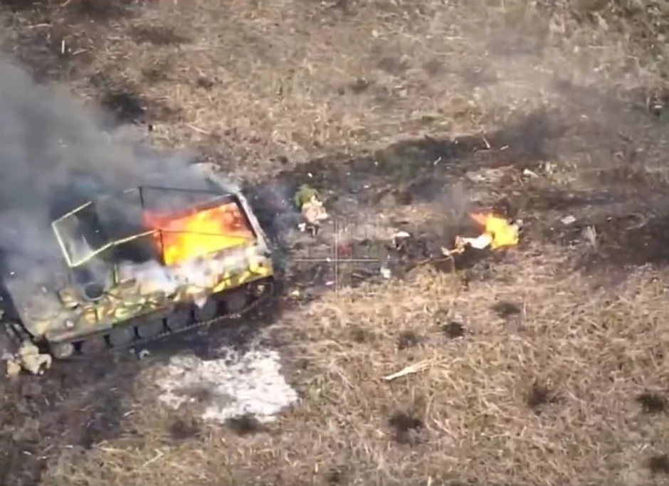 Snimak napravljen dronom, navodno prikazuje ukrajinske snage kako gađaju više ruskih tenkova i oklopnih vozila. Snimak prikazuje borbe i spaljene ostatke vojnog vozila i vojnika u plamenu, koji puzeći pokušava da pobegne odatle. Njuzvik napominje da nije bilo moguće da se nezavisno potvrdi kada je snimak nastao.
