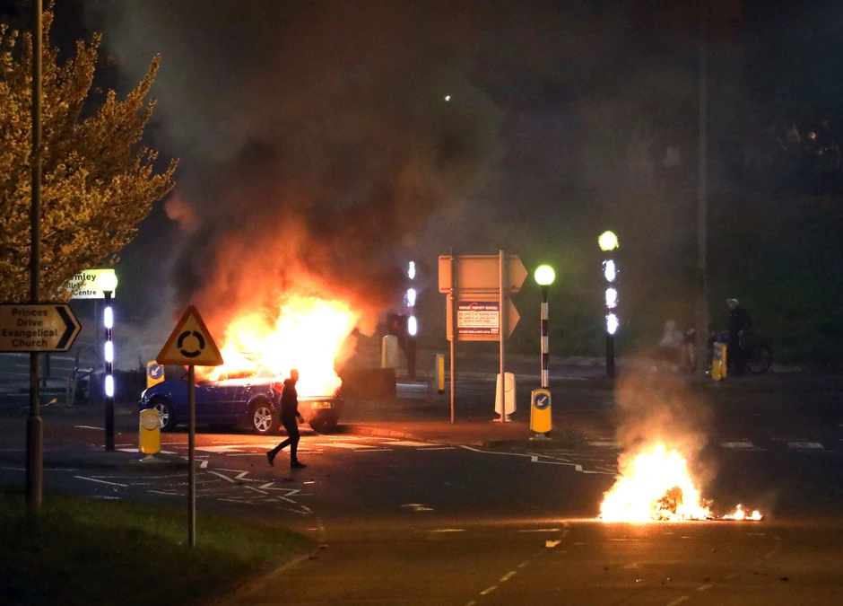BBC je izvestio da su na policajce bacani Molotovljevi kokteli i pitotehnička sredstva.