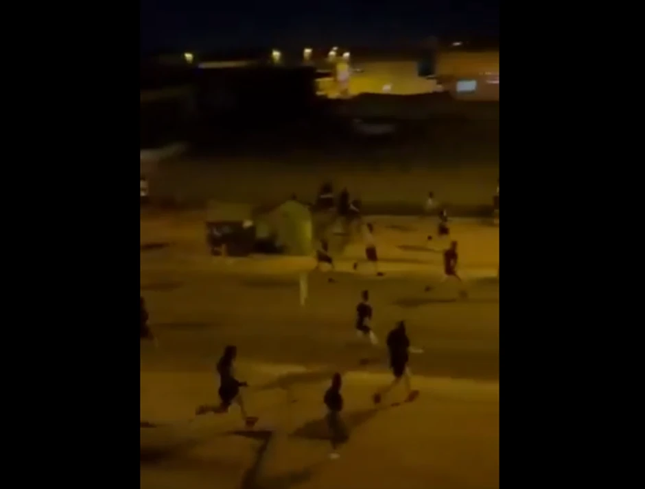 Na snimcima objavljenim na društvenim mrežama mogu se videti muškarci u odeći sa simbolima krajnje desnice i migranti koji nose marokanske zastave kako međusobno bacaju predmete tokom sinoćnjih sukoba, koji su usledili nakon nekoliko dana nemira manjeg intenziteta.