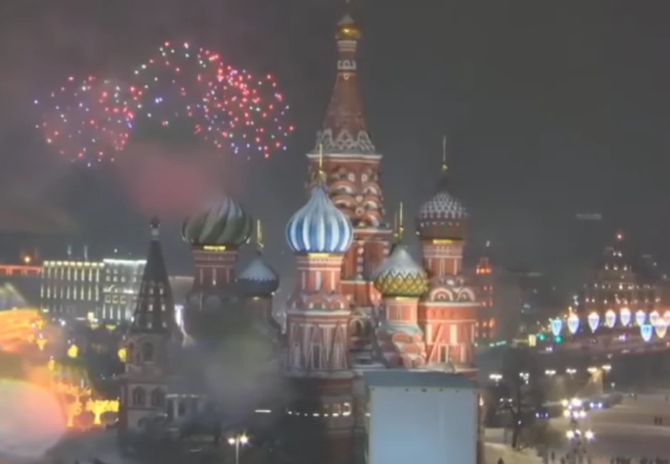 Velikim vatrometima, na više lokacija, Moskva je večeras dok pada sneg ušla u 2022. godinu, dva sata pre gradova koji su u srednjoevropskoj vremenskoj zoni.