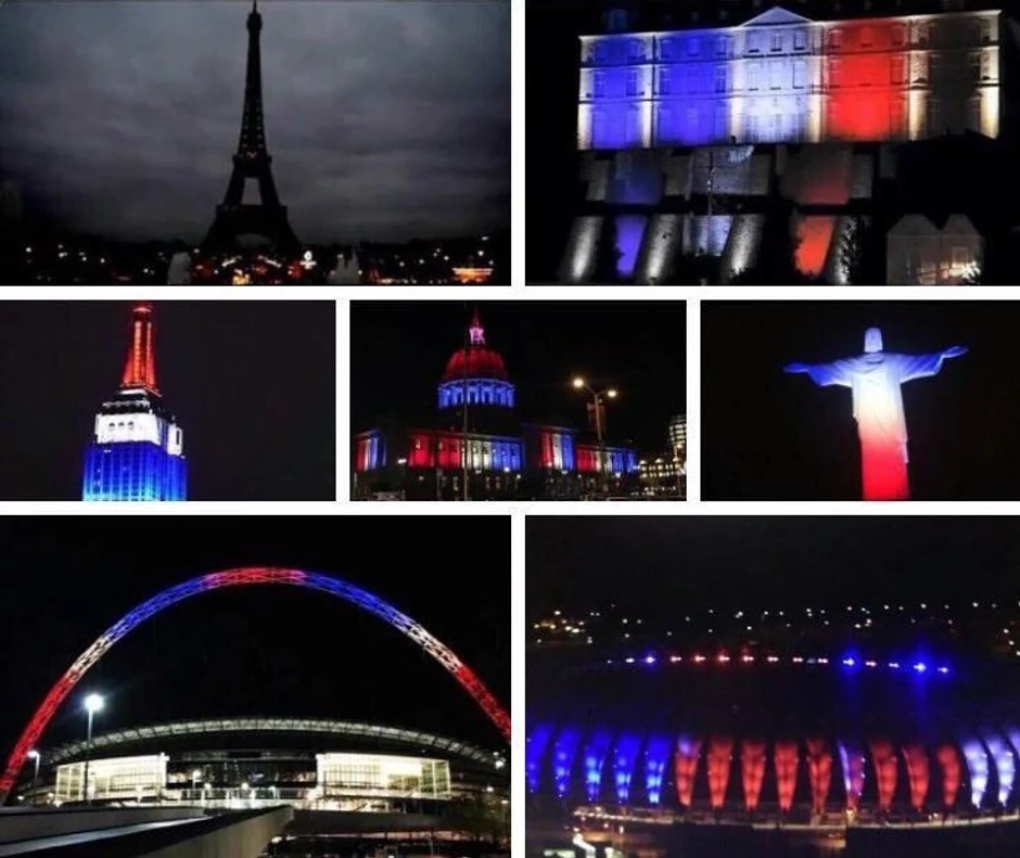 "Kada grad svetlosti potamni, svet se usija u znak podrške" glasi jedan post na Tviteru u kom je napravljen kolaž fotografija iz celog sveta na kojima dominiraju boje francuske zastave. Svi veći gradovi sveta podržali su Francusku i žrtve napada u Parizu na svoj način.