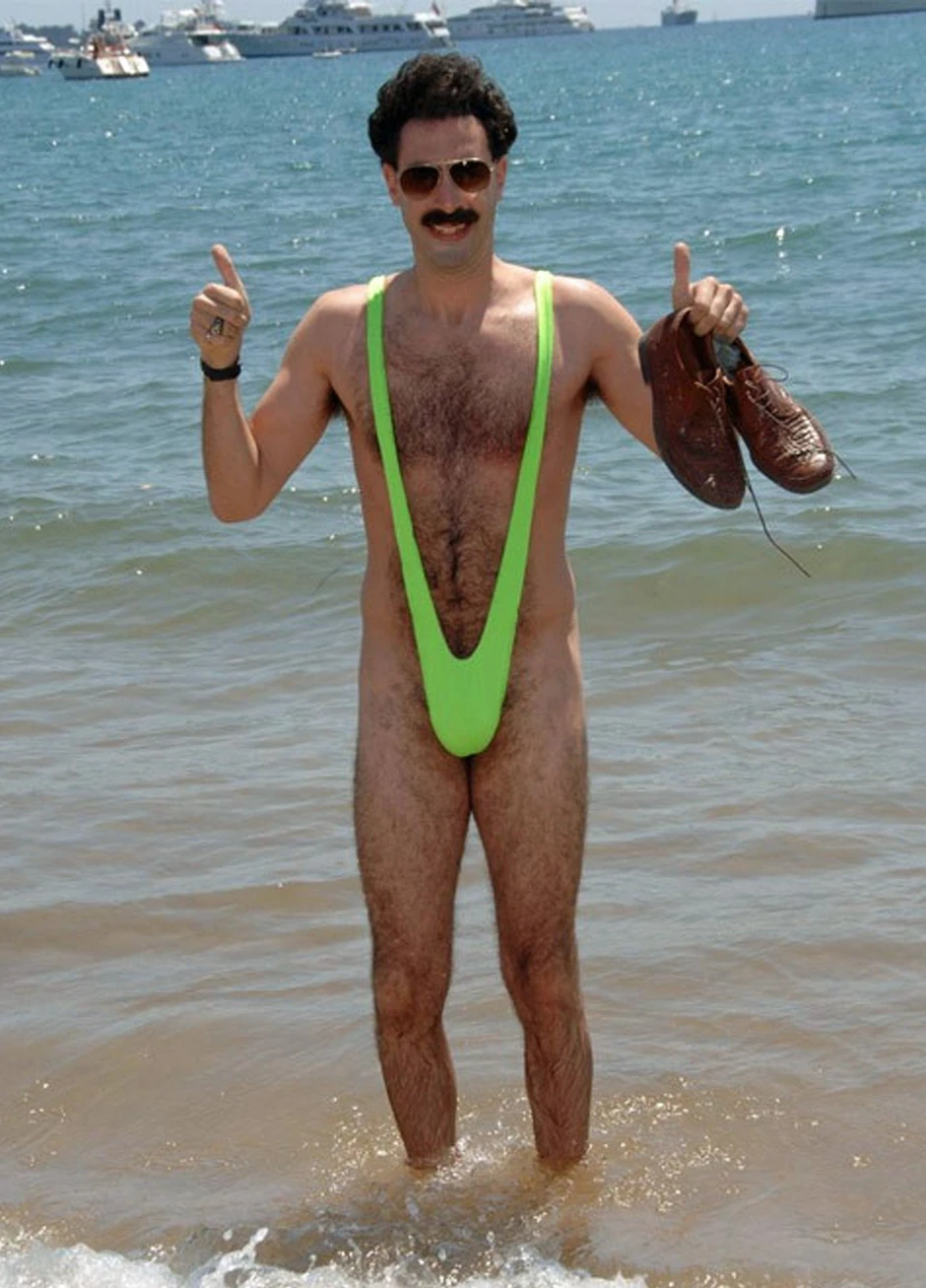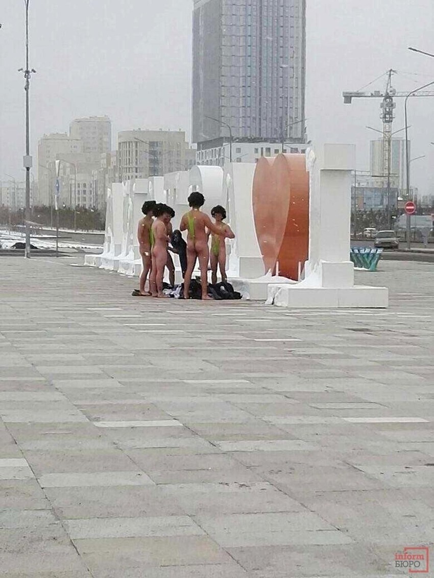 Grupa od šest čeških turista, koji su se desetog novembra u kazahstanskoj prestonici Astani (na temperaturi od minus dva stepena Celzijusa) slikali u Boratovom, drečavozelenom kupaćem kostimu "menkiniju", kažnjena je sa po 60 dolara zbog “blagog huliganstva” i izazivanja gneva javnosti. Policija je uhapsila golišave češke šaljivdžije dok su pozirali ispred velikog natpisa “Astana”.