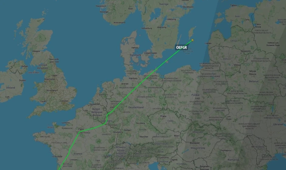 Avion se okretao dva puta kod Pariza i Kelna nakon čega je krenuo pravolinijski preko Baltika prošavši pored švedskog ostrva Gotland.