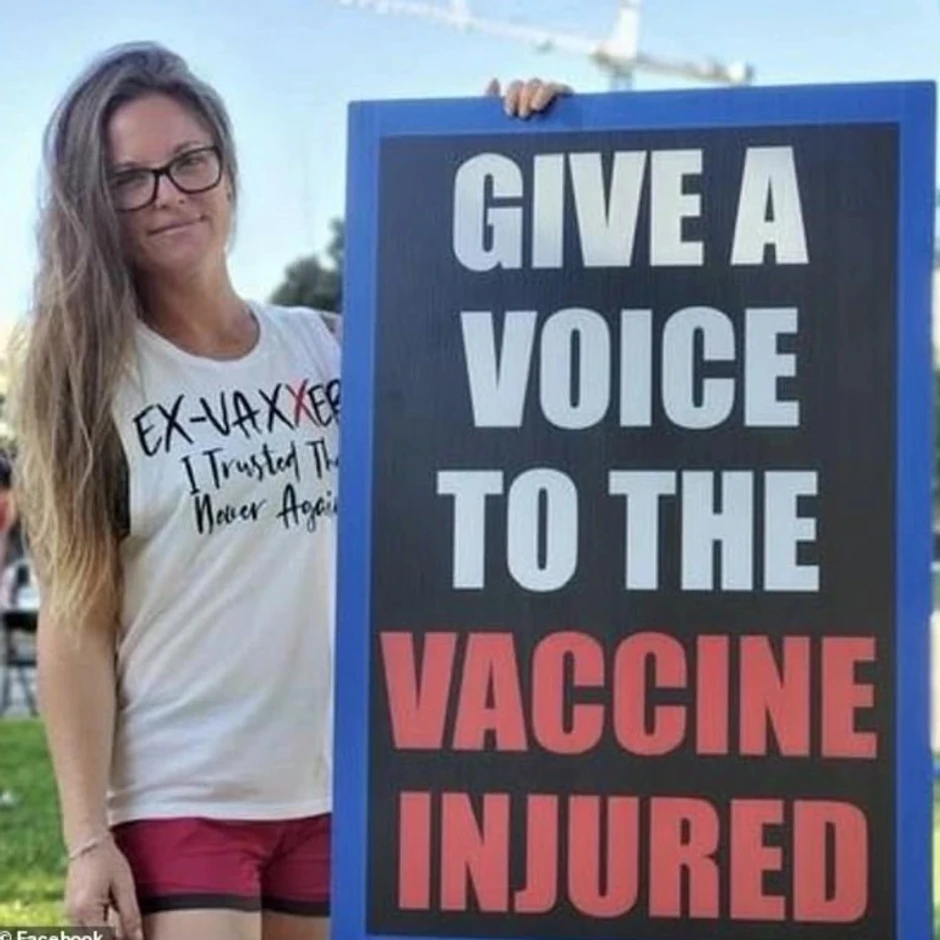 Na jednoj fotografiji pozirala je sa transparentom na kojem piše "dajte glas za one koji su oboleli od vakcine".