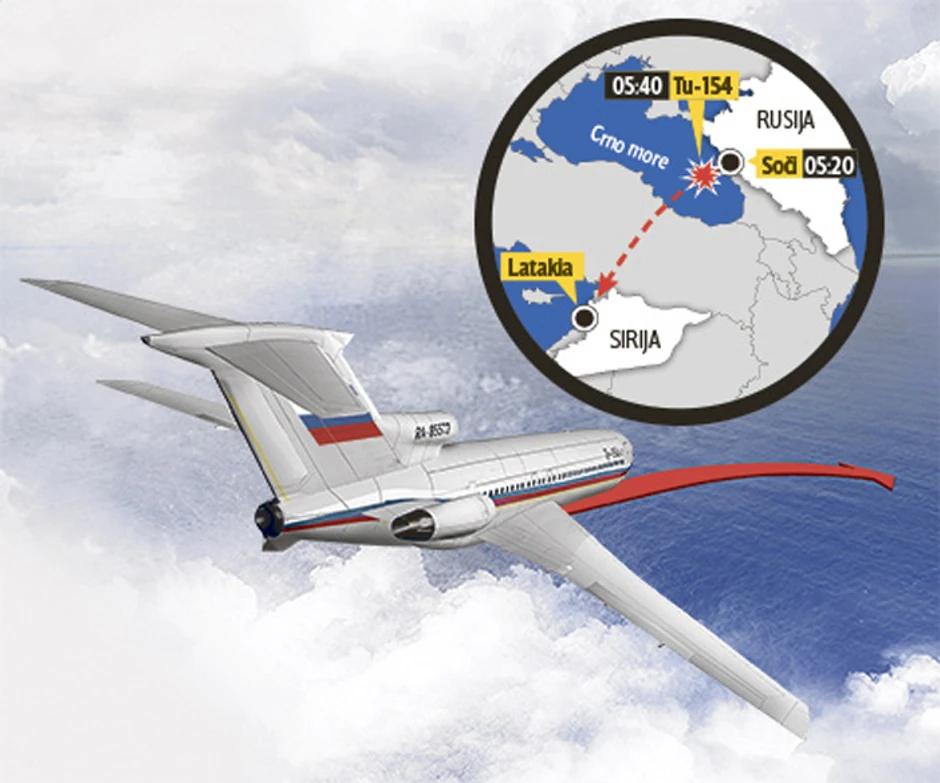 Avion TU-154 ruskog Ministarstva odbrane srušio se u Crno more odmah posle poletanja iz Sočija, a u njemu je poginulo 92 ljudi.
