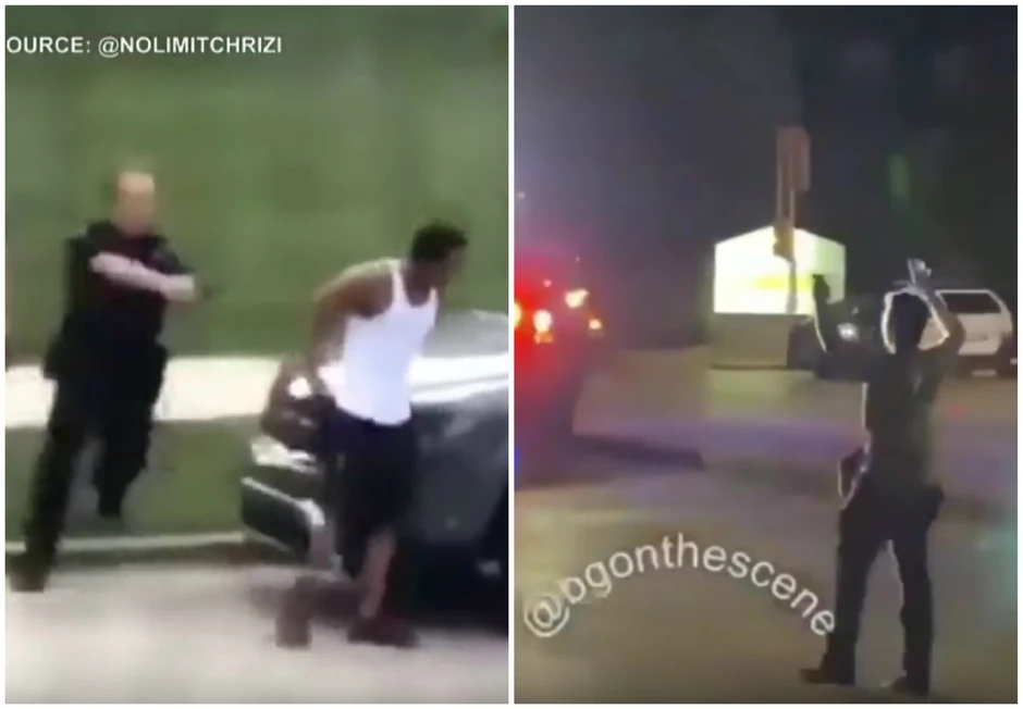 Dva videa uhvatila su radikalno drugačiji stav policije koja se suočila sa dva muškaraca – jedan je bio Blejk, otac koji je ušao u spor sa policijom, a drugi 17-godišnji Kajl Ritenhaus, koji je doputovao iz druge države sa puškom, ubio dvoje i ranio jednu osobu.