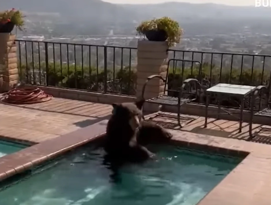 Crni medved okupao se danas u bazenu u dvorištu kuće u Južnoj Kaliforniji, a ceo događaj zabeležili su službenici policije koji su reagovali na poziv vlasnika.