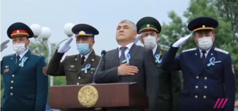 Prilikom intoniranja nacionalne himne, presednik Šavkat Mirzijojev je stavio ruku na srce što je zbunilo okupljene oficire, a njihova dalja reakcija bila je krajnje komična - pošto nisu znali da li da poštuju protokol ili slede primer svog presednika.
