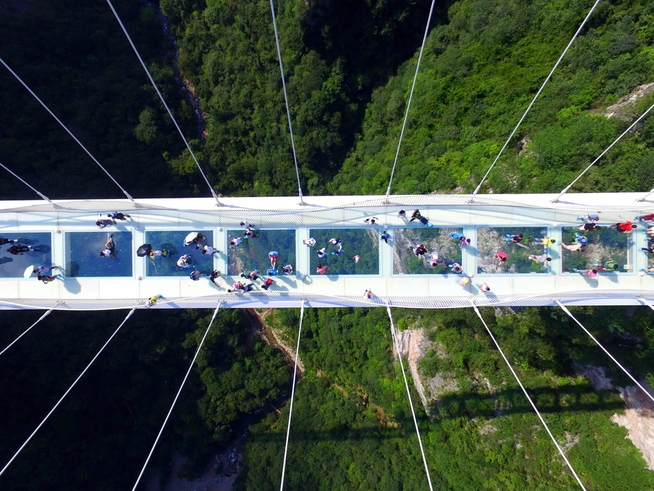 Dugačak 430 metara i na visini od od 300 metara od zemlje, most spaja kanjon između dve stene u Džangđiađie parku u centralnoj kineskoj provinciji Hunan.