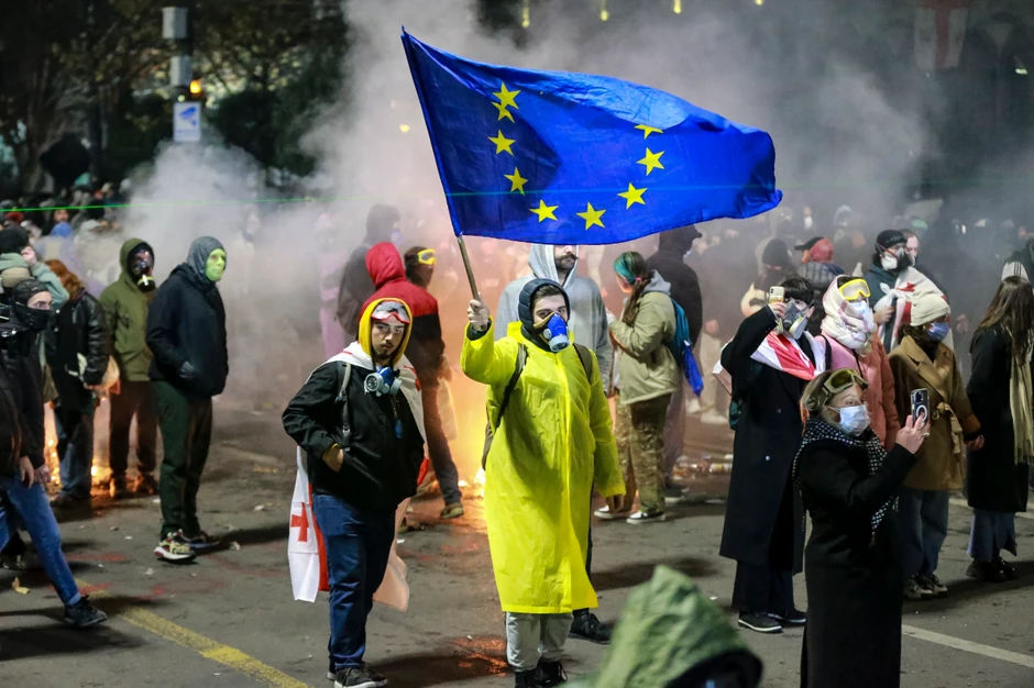 U Tbilisiju, prestonici Gruzije, u četrvrtak su izbili sukobi između demonstranata i policije, koji su se nastavili i dan kasnije. Snage reda koristile su vodene topove, suzavac i biber sprej da razbiju velike demonstracije protiv vladine odluke da obustavi pregovore za pridruživanje EU do 2028.