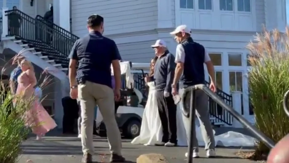 U jednom trenutku, on je stao da se fotografiše sa mladom koja se danas venčala u golf klubu.