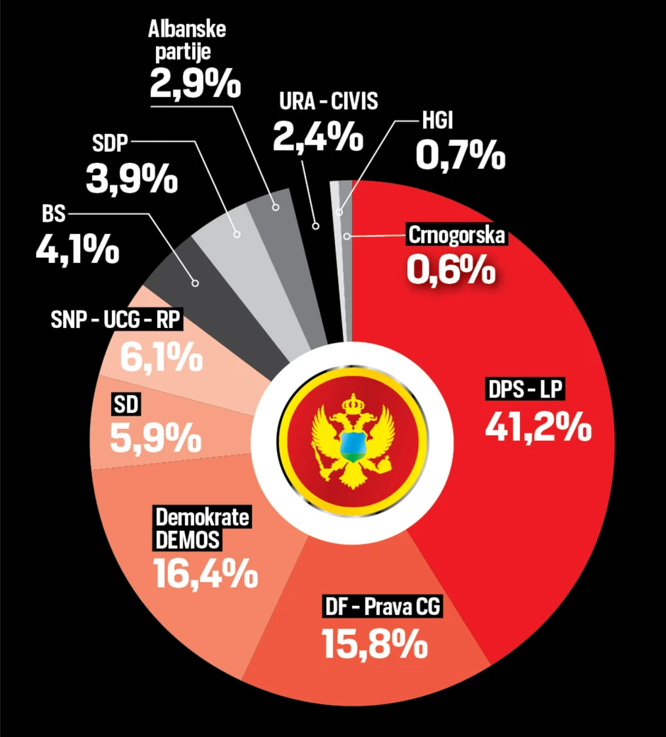 Istraživanje agencije “Haus of vin”, koje “Blic” objavljuje, pokazuje da bi Đukanovićev DPS da se izbori održavaju u nedelju u koaliciji sa Liberalnom partijom osvojio 41,2 odsto glasova.