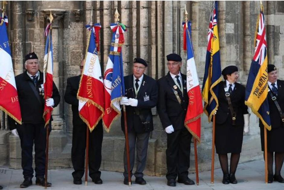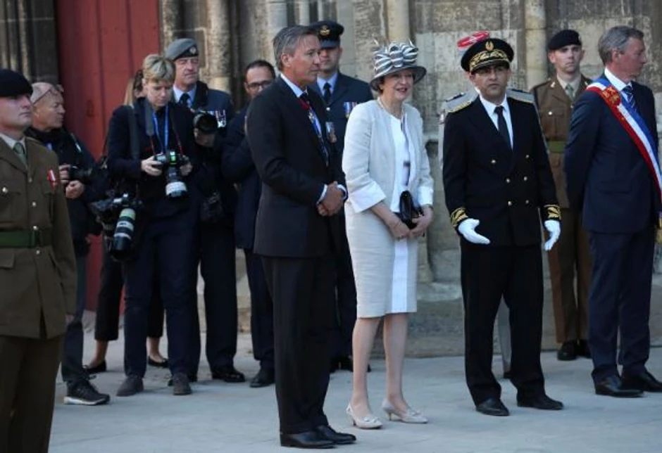 Pored Mej i Makrona, koji su održali govore u Ver-Sur-Mer, ceremoniji polaganja kamena temeljca za novi spomenik, na kojem će biti zabeležena imena više hiljada vojnika koji su pod britanskom komandom poginuli na Dan D i tokom Bitke za Normandiju, prisustvovali su i veterani u uniformama.