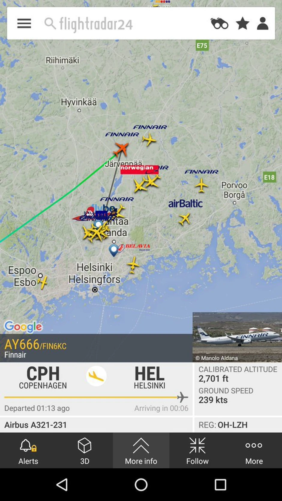 Očekuje se da avion, koji je poleteo oko 13 sati, u Hel (Helsinki) sleti oko 16 sati po lokalnom vremenu.