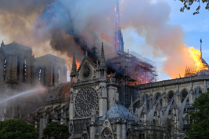 Katedralu Notr Dam u Parizu zahvatio je požar 15. aprila. Dok su vatrogasci uspeli da ugase vatru, uništeni su toranj i većina krova katedrale, dok su zidovi i unutrašnjost teško oštećeni. Mnoge relikvije i umetnička dela su spaseni, ali su neki oštećeni ili uništeni.