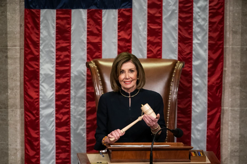 Predsedavajuća Predstavničkog doma američkog Kongresa, demokrata Nensi Pelosi, zvanično je pokrenula 24. septembra proces impičmenta, odnosno zvaničnu istragu o tome da li bi predsednik Donald Tramp trebalo da bude opozvan zbog navodne zloupotrebe položaja, nakon što je otkriven sadržaj njegovog razgovora sa ukrajinskim predsednikom. Impičment je izglasan u donjem domu Kongresa 18. decembra, kad je i nastala ova fotografija. Trampu sada sledi proces suđenja u Senatu, koje će se verovatno održati u drugoj nedelji januara. Malo je, međutim, verovatno da će biti opozvan.
