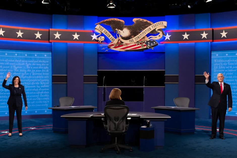 Večerašnju raspravu obeležio je mnogo manji broj upada, a Pens i Haris su preuzeli ulogu portparola Trampa i Bajdena. Debata se vodila u Solt Lejk Sitiju, a republikanac i predsetavnica demokrata bili su na tri metra udaljenosti i razdvojeni pleksiglasom.