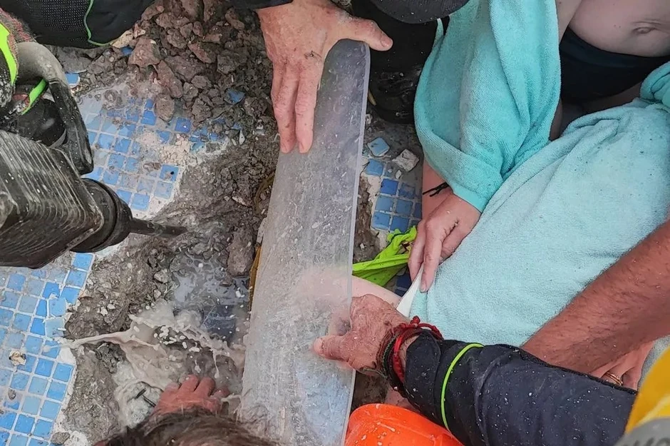 Bolničari su prvi stigli na lice mesta, ali nisu uspeli da izvuku dečaka, što je primoralo vatrogasce da isprazne bazen, a zatim da koriste pneumatsku bušilicu da dođu do cevi koja vodi do otvora.