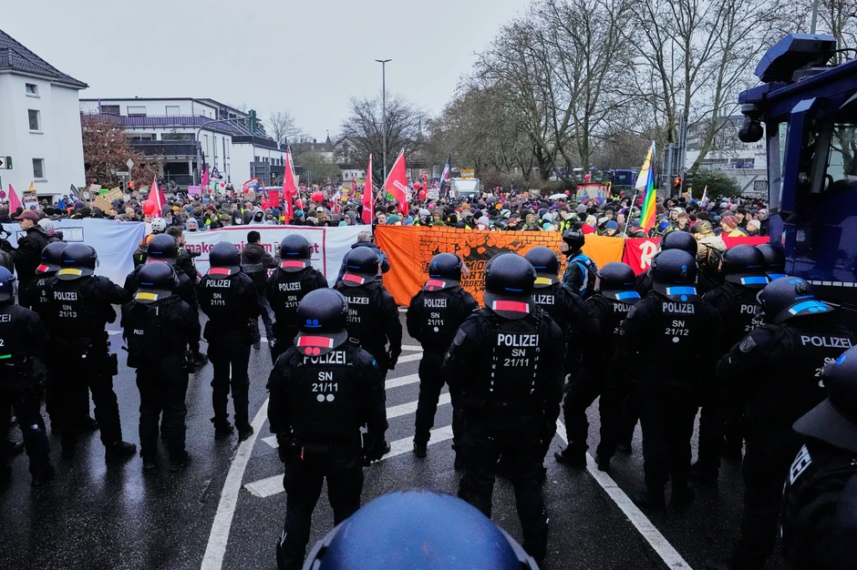Demonstranti, njih oko 2.000, blokirali su auto-put, zbog čega je policija tražila da se sklone sa njega, a kada to nisu uradili, policija je počela da potiskuje demonstrante, cepa transparente i na kraju upotrebila vodene topove, piše "Velt am Zontag".