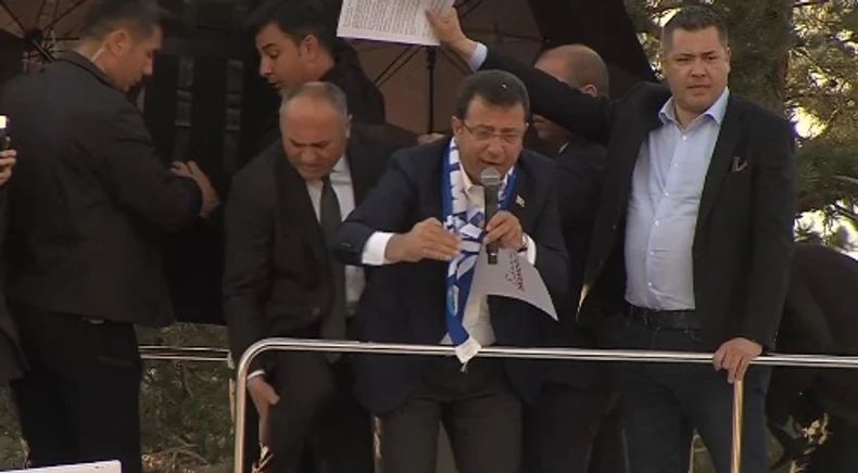 Kako se navodi, Imamoglu je u okviru predizborne kampanje autobusom posetio Erzrum, i dok se sa krova autobusa obraćao okupljenima, demonstranti su počeli da ga zasipaju kamenjem, pa je bio primoran da se zakloni.