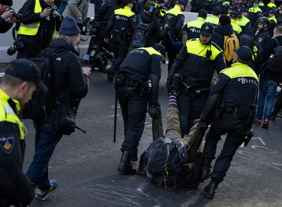 Neki od demonstranata su se, kako navode holandski mediji, zalepili za beton ili su se međusobno vezali lancima, kako bi se usporilo njihovo uklanjanje.