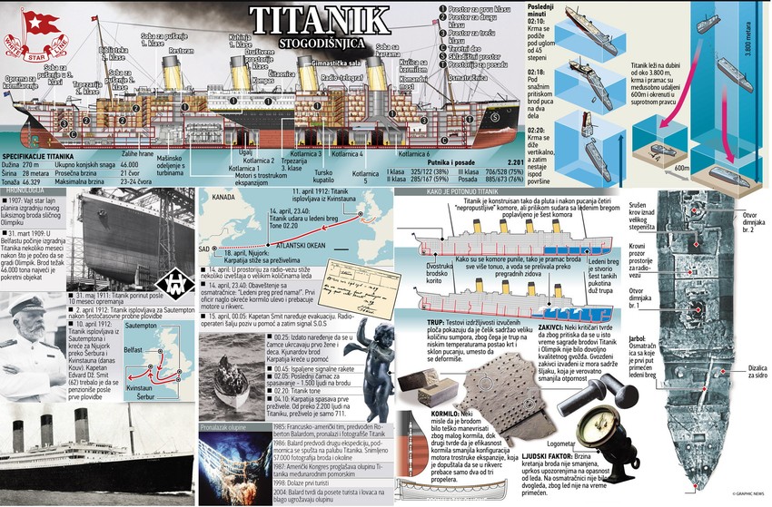 Tačno sto godina je prošlo od kako je čuveni "Titanik", ponos britanskog i svetskog brodarstva, potonuo na svom prvom i ujedno poslednjem putovanju. Od 15. aprila 1912. do danas traju debate kako ovaj kruzer nije uspeo da izbegne santu leda te vedre aprilske večeri i zašto je potonuo za svega tri sata odnevši sa sobom više od 1.500 života.