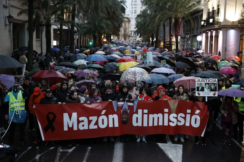 Više hiljada ljudi izašlo je na ulice Valensije tražeći ostavku regionalnog lidera Karlosa Mazona i njegove vlade zbog odgovora na smrtonosne poplave prošlog oktobra, javlja "Juronjuz".