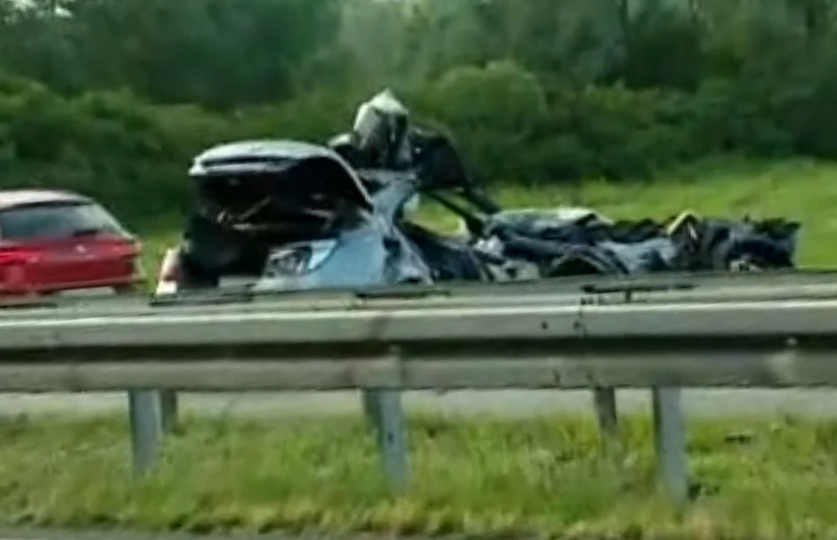Kako se vidi na fotografijama sa lica mesta, automobil je pretrpeo totalnu štetu.
