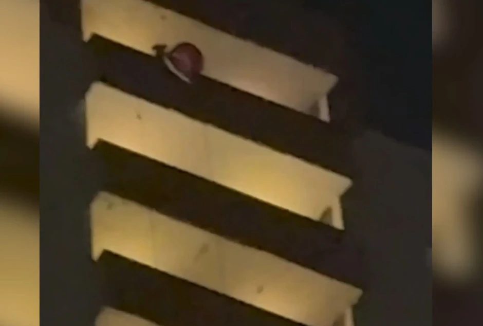 Neidentifikovani penjač pokušavao je da se spusti niz stranu stambene zgrade od 24. sprata u Čeljabinsku kako bi oduševio gomilu ispod kada je izgubio stisak.