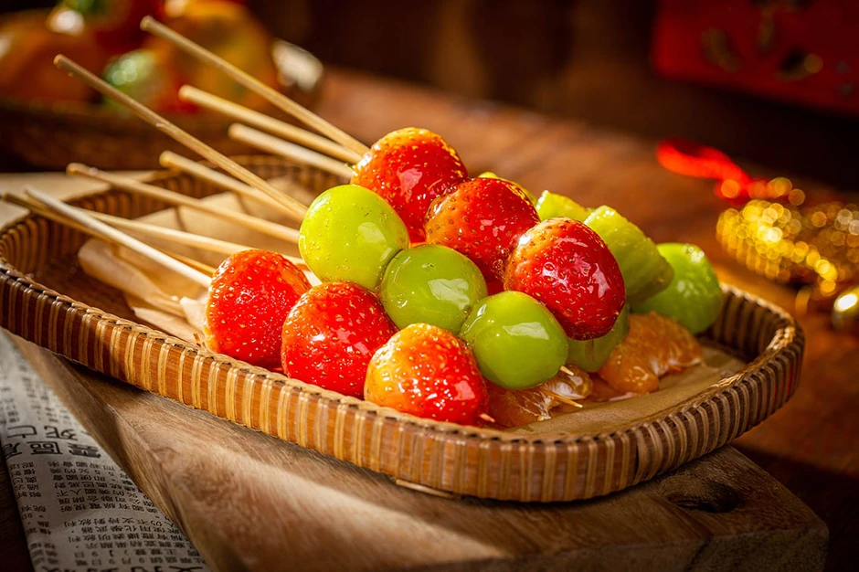 Recept koji je Sofi pokušala uključuje zagrevanje šećera i vode da bi se napravio šećerni sirup, koji se zatim glazira preko ražnjića koji su napravljeni od raznog voća, pre nego što se potopi u hladnu vodu da bi se stvorila tvrda, hrskava površina.