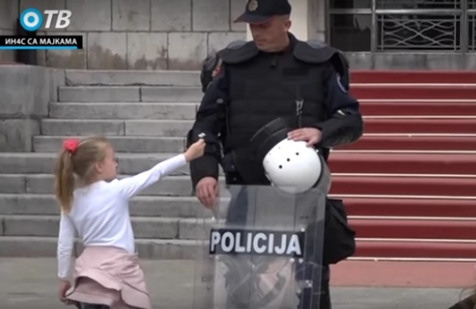 Na snimku se vidi kako policajcu prilazi devojčica koja mu predaje cvetić, ali specijalac odbija da ga uzme. Devojčica je malo sačekala i kada je shvatila šta se dešava, otrčala je uplašena i uplakana.