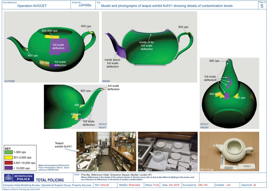 Britanska istraga potom je utvrdila da iza ubistva najverovatnije stoji ruski državni vrh, a kao jedan od dokaza navedno je to da supstanca kojom je Litvinjenko otrovan potiče iz nuklernog reaktora.