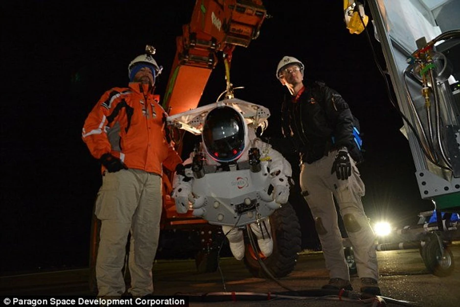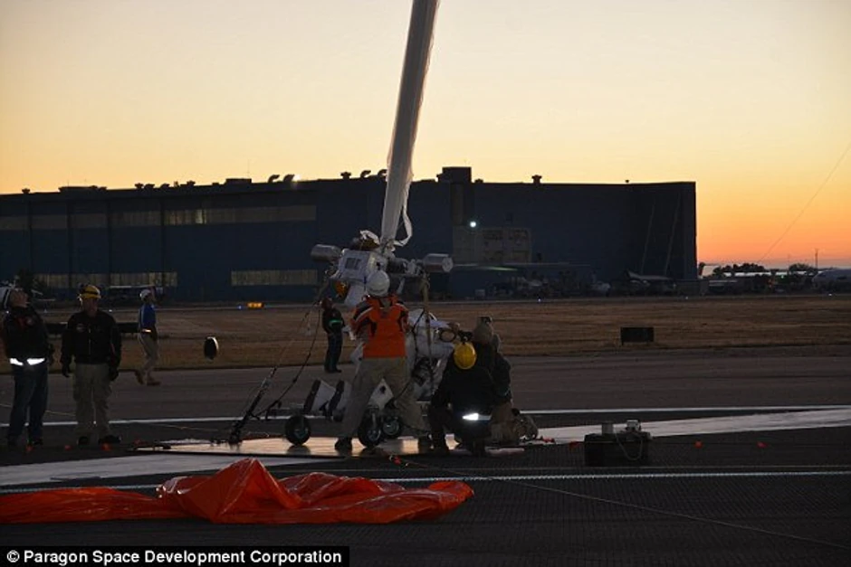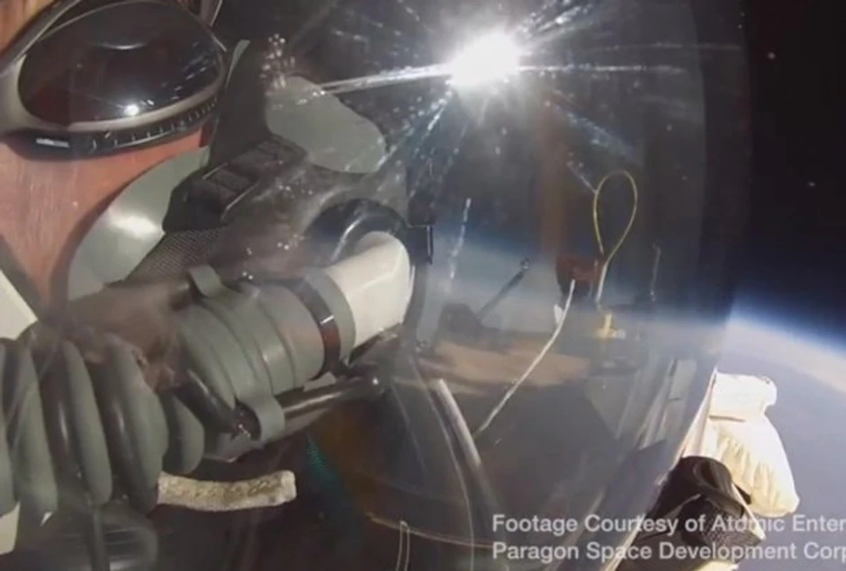 On je nosio specijalno dizajnirani skafander, dok se Baumgartner peo u kapsuli.