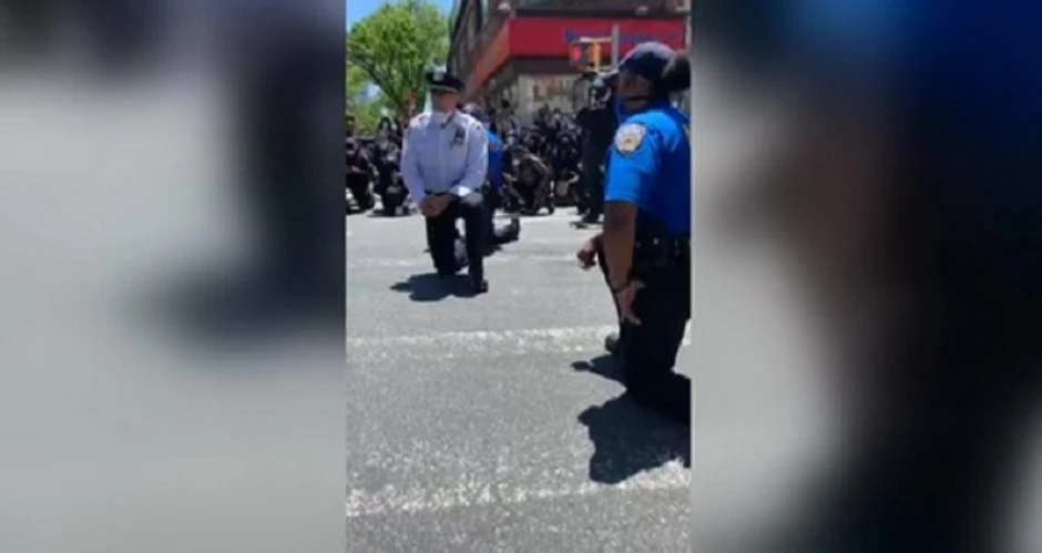 Prolaznik Alija Abraham snimio je policajce kako kleče tokom marša u Kvinsu, pozivajući na pravdu zbog smrti Džordža Flojda, Afroamerikanca koji je umro pre nedelju dana tokom hapšenja u Mineapolisu nakon čega su širom Sjedinjenih Američkih Država krenuli protesti.