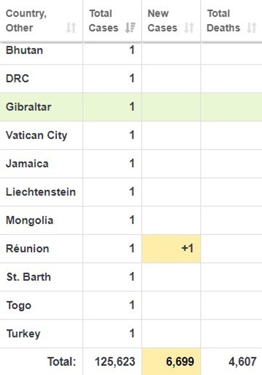 Do danas se korona virusom zarazilo 125.655 osobe, dok je broj aktivnih slučajeva 53.997. Od toga 89 odsto (48.079 ) ima blaži oblik bolesti, dok je 11 odsto (5.918) u kritičnom stanju. Od korona virusa se, zaključno sa današnjim danom, oporavilo 66.943 obolelih širom sveta.