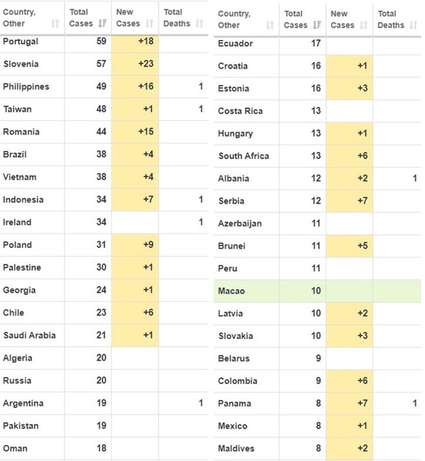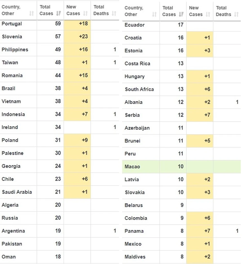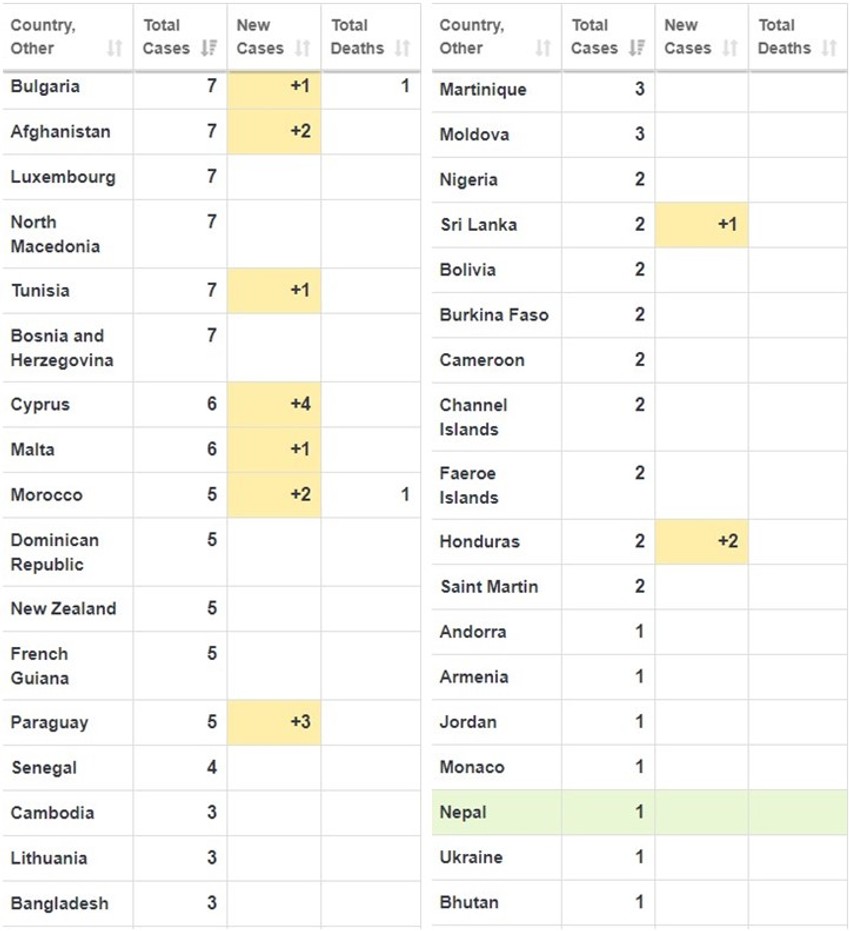 Prve slučajeve prijavili su Honduras, Turska, Kipar, Kongo i Bolivija, a jedina zemlja u Evropi u kojoj nema korona virusa je Crna Gora.