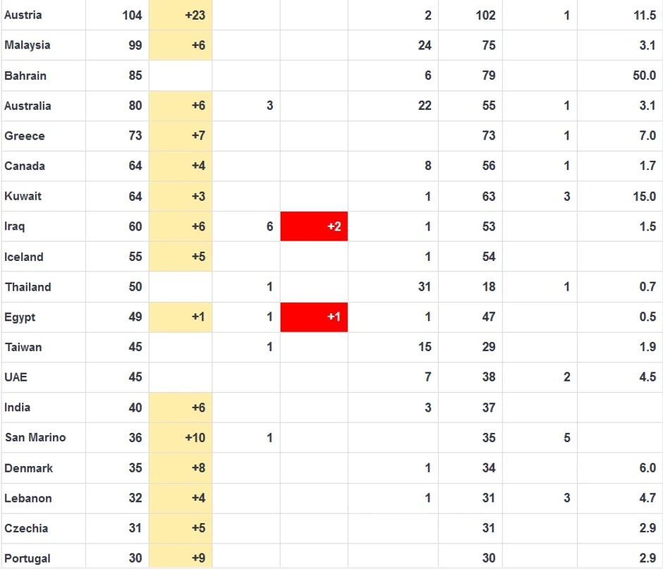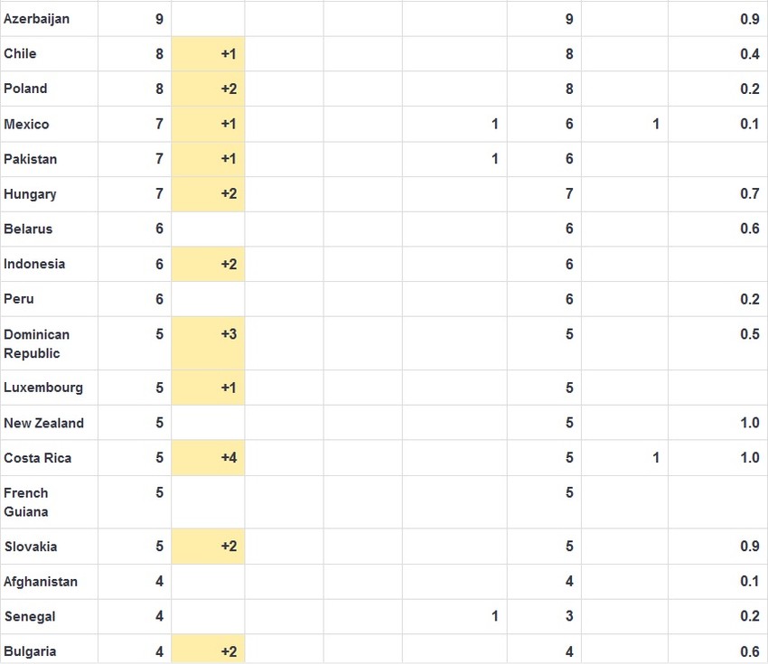 U međuvremenu su zabeleženi i prvi slučajevi zaraze u Bugarskoj (4) i u Moldaviji jedan. Prema podacima sa "Worldmeter" sajta sada su samo dve evropske države bez zabeleženih slučajeva zaraze - Crna Gora i Albanija.