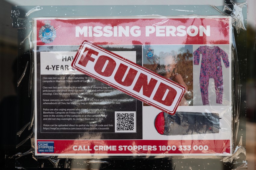 Policija sumnja da je Terens "Teri" Keli (36) oteo Klio iz porodičnog šatora u kampu Blouhols u Zapadnoj Australiji tokom noći 16. oktobra. Kamp je blizu Karnarvona u kojem Klio živi sa porodicom. Devojčica je pronađena više od dve nedelje kasnije, kad su Kelijeve komšije primetile njegovo sumnjivo ponašanje. Detektivi su upali u njegovu kuću i pronašli Klio kako se igra sa igračkama.