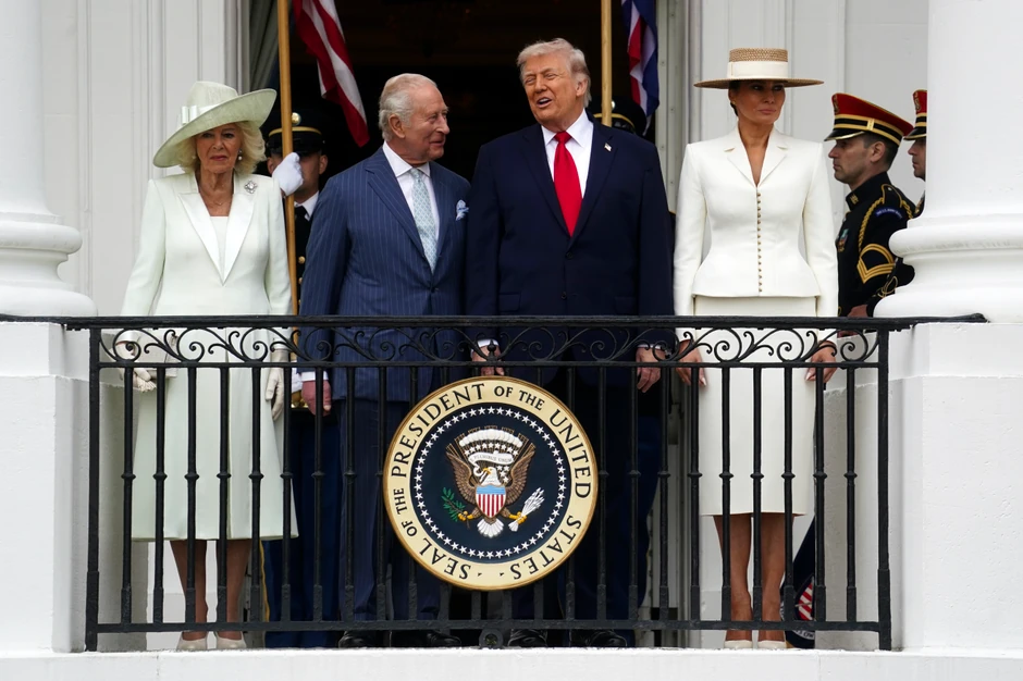 Naglasio je da je drvo, kao i same Sjedinjene Države, "zasađeno britanskim rukama na američkom tlu". Nakon kratkih reči Donalda Trampa, njih četvoro su sišli sa bine i izašli na balkon Bele kuće. Tamo su ćaskali dok su gledali vojnike kako marširaju i sviraju na Južnom travnjaku.
