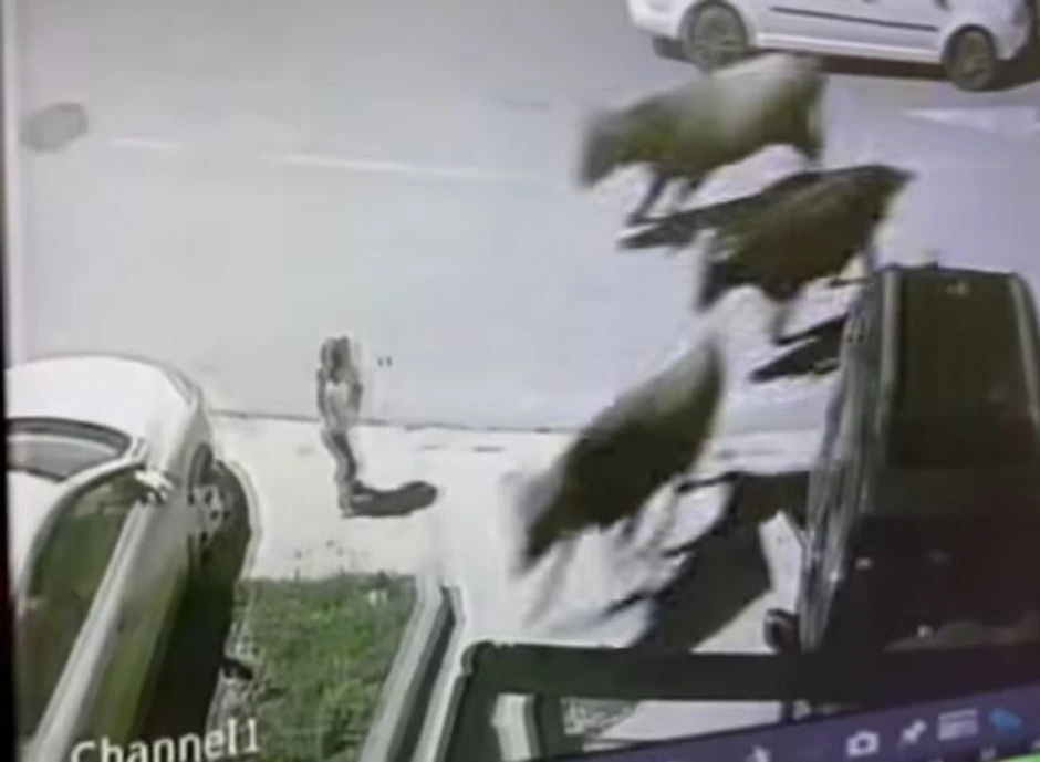 Na snimku koji je dostavljen "Vijestima" vidi se dete koje stoji između dva automobila na trotoaru, dok se nekoliko krava slobodno kreće ulicom i trči ka detetu.