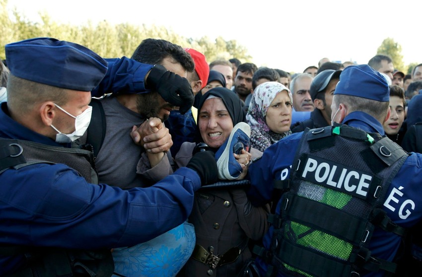 Mađarska policija je ranije večeras koristila biber-sprej protiv onih koji su pokušavali da se probiju kordon, javio je Rojters, međutim mađarska agencija MTI javlja da policija nije koristila suzavac ni palice.