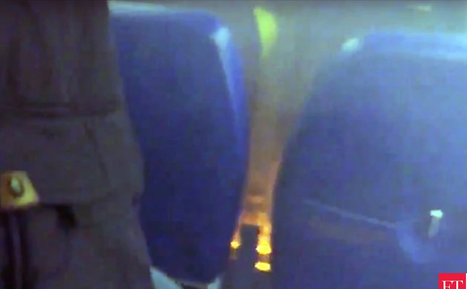 Na video snimcima koje su snimili putnici, vidi se plamen ispod jednog sedišta i dim u delu ekonomske klase u avionu, dok putnici i članovi posade pokušavaju flašicama vode da ugase požar.