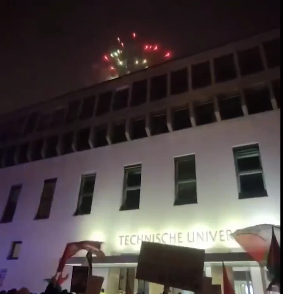 Propalestinski aktivisti provalili su u glavnu zgradu Tehničkog fakulteta u Minhenu, nakon čega su na krovu zgrade napravili vatromet i razvili transparente, saopštila je policija.