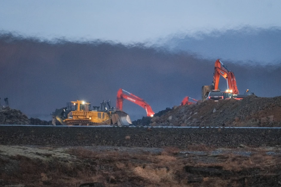 Nakon što je — prethodno usporena — erupcija vulkana iznenadila građane Grindavika, a lava došla do prvih evakuisanih kuća naseljenog ribarskog naselja, snimljen je i dramatičan trenutak kada užarena masa stiže do građevinskih radnika i njihovih vozila, u trenutku kada su pokušali da izgrade odbrambeni zid kako bi zaštitili dalje probijanje.
